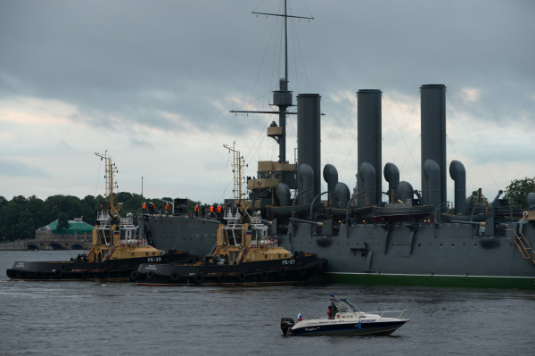 Ночью в Петербурге прогулочный катер прибило волной Авроре